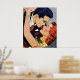Couple dans une étreinte aimante elle a les cheveux rouges et une boucle d'oreille de fleurs vintage rétro comique Poster Anime Cartoon Comic Fiction Manga