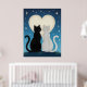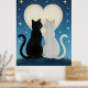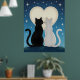 Deux chats amoureux sous un ciel étoilé bleu et une lune blanche en forme de coeur. Illustration de style rétro pour les félicitations mariages ou la Saint Valentin.
