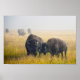 "Courting Bison, parc national de Yellowstone, Wyoming" par Catherine Sherman. Un bison souffle son amour pour une bison femelle dans la vallée Hayden du parc national de Yellowstone, dans le Wyoming, sans se laisser décourager par une brume sulfureuse du volcan Mud et du Cauldron Sulphur, deux caractéristiques thermales à proximité. Le soleil qui traverse le brouillard baigne la paire de courtisseurs. Le troupeau de bisons de Yellowstone Park est le plus grand troupeau public de bisons américains aux États-Unis. En 2016, on a estimé que la population de bisons de Yellowstone était de 5 000. Le bison américain (bison) et le bison européen (bison) sont les plus grands animaux terrestres survivants en Amérique du Nord et en Europe. Hayden Valley est une grande vallée sub-alpine du parc national Yellowstone, qui longe la rivière Yellowstone, entre les chutes Yellowstone et le lac Yellowstone. Le fond de la vallée le long de la rivière est un ancien lit de lac d'une époque où le lac Yellowstone était beaucoup plus grand. Le bison broute fréquemment dans cette belle vallée.