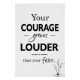 Inspire confidence and inner strength with this beautifully designed motivational poster. Featuring the uplifting quote **“Your courage grows louder than your fear.”**, this minimalist black-and-white design combines bold typography with elegant script lettering and a delicate botanical illustration for a calm yet powerful visual impact.