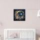 "Lunar Garden Wreath" est un design époustouflant qui combine éléments célestes et botaniques. Une lune au croissant doré et magnifiquement ornée berce une lune pleine et brillante et un ciel plein d'étoiles. La scène est entourée d'une couronne luxuriante de fleurs délicates bleues, crème et roses, créant une affiche magique et élégante.
