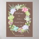 Invitez vos proches à célébrer avec notre superbe panneau de bienvenue pour une baby shower avec une couronne de verdure succulente. Ajoutez une touche de charme du désert avec un design qui capture la beauté moderne des plantes botaniques du désert, ce qui en fait un choix idéal pour une baby shower chic et mémorable. L'invitation présente une charmante couronne à l'aquarelle, méticuleusement réalisée avec des succulentes dans une délicieuse palette de vert pâle, de vert foncé riche et de teintes roses délicates. Ces succulentes vibrantes ressortent magnifiquement sur un fond brun doux, créant une palette sophistiquée et harmonieuse. Entrez facilement vos propres détails et, si vous le souhaitez, vous pouvez modifier le style, la taille, la couleur et l'emplacement de la police. Si vous aimez ce panneau de bienvenue et que vous souhaitez apporter des modifications spécifiques ou commander un produit supplémentaire qui ne figure pas