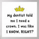 Princesses, reines, patrons et pourcentages peuvent se relier. Mon dentiste m'a dit que j'avais besoin d'une couronne. J'étais comme si je savais, n'est-ce pas ? Découvrez ce drôle de design personnalisé sur tee - shirts, chemises, tasses, pyjamas, cadeaux et vêtements.