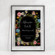 Dirigez vos invités vers votre bar à Mimosa pour qu'ils puissent se rafraîchir ! Des fleurs sauvages aquarelles colorées sur fond noir créent un design Boho saisissant. Des fleurs sauvages botaniques, de la verdure de feuilles et des abeilles sont combinées avec une police calligraphique manuscrite. Cette œuvre d'art a été peinte et conçue graphiquement par l'artiste et designer licenciée à l'international, Audrey Jeanne Roberts, copyright.