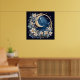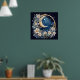 "Golden Lunar Wreath" est un design d'affiche époustouflant qui allie beauté céleste et élégance botanique. Une lune de croissant doré, magnifiquement détaillée, brille brillamment contre un ciel étoilé, bleu profond. La lune est entourée d'un arrangement luxuriant de fleurs et de feuilles blancs et bleus, créant un sentiment de sérénité et de grâce magique.