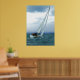 Un voilier fait une course dans le vent alors qu'une tempête se réunit sur l'océan.