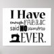 Montrez votre amour pour le tissu et toutes les choses qui cousent en arborant cette incroyable "J'ai assez de tissu, dit pas couturier jamais!" citation! Faites également un grand cadeau pour le tissu amoureux d'égout crochet dans votre vie! Rappelez-vous que vous ne pouvez JAMAIS avoir assez de tissu, point ! ! Vecteezy.com