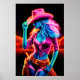 Poster Cowgirl chic et dynamique avec éclairage néon rétr