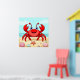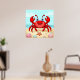 Poster Crabe rouge caricaturale gai sur une plage avec co