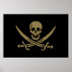 Poster Crâne et épées d'or Drapeau pirate de Calico Jack