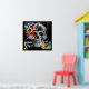 Peinture numérique originale et arrière - plan noir. Un crâne humain réaliste à l'échelle grise, des fleurs sauvages et des papillons colorés poussant à partir d'une prise oculaire. Aquarelle de peinture. Fleurs de soleil jaunes, marguerites roses et violettes et pavots rouges. Design moderne du crâne à sucre. Idéal pour Halloween ou pour ceux qui aiment une touche de gothique.