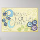 Que ce soit un mantra pour l'esprit créatif ou une invite murmurée de votre muse intérieure, ces mots portent l'intention d'inspirer. Fleurs bleues et violettes avec un cadre de foilage tourbillonnant cette invitation à déclencher l'activité créative. Design entièrement dessiné à la main et lettré. Texte : "Dream Focus Create" Couleur : Vivid