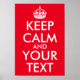 Créez votre propre affiche "Conserver le calme et votre texte" avec une couleur rouge vif ou une autre couleur arrière - plan. Je suggère que si vous voulez modifier la taille du texte, vous sélectionniez tous les calques de la conception du texte et que vous modifiez la conception entière à la fois.