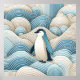 Ce design présente un pingouin serein au centre d'une danse aquatique ornée, entourée de vagues façonnées dans le style complexe des imprimés japonais en blocs de bois. La palette apaisante de bleus et de crèmes rend la tranquillité de l'océan, tandis que les lignes tourbillonnantes et les motifs véhiculent mouvement et profondeur. Cette pièce est une conception moderne de l'art traditionnel, parfaite pour ceux qui apprécient la fusion de l'esthétique culturelle avec les thèmes de la faune. Un mélange de calme et d'artisanat, idéal pour un espace à la recherche d'une touche d'élégance et de tranquillité.