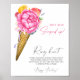 Cette douche nuptiale à thème crème glacée est décorée de fleurs d'aquarelle et d'un cône de crème glacée. Le texte dit "Elle a été scoopée !" dans la typographie stylée rose. Crème glacée aquarelle aux fleurs et aux fruits.