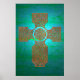 L'artiste Aric Jorn modélise sa croix celtique dessinée à la main dans sa combinaison de couleurs préférée - rouille et turquoise.