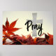Poster Croix chrétienne de Prière, Feuilles rouges d'auto