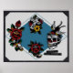 Poster Croix du crâne et Rose traditionnel Tattoo Flash