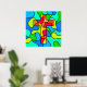 Illustration simple d'un symbole de croix coloré conçu dans le style d'une église en vitrail. Image disponible sur divers cadeaux et produits.