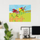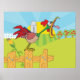 A crowing rooster standing on a farm fence. This design looks really effective on these Poster