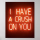 J'ai un crush sur toi, signe néon. Une façon parfaite de professer romantiquement votre béguin. Rouge, rose clair.