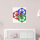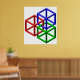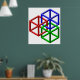 Cette affiche présente un graphique vectoriel d'illusion optique des cubes impossibles, en bleu, rouge et vert. La couleur arrière - plan peut être customisée si vous le souhaitez.