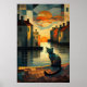 Poster Cubist Chat : Coucher de soleil sur les eaux vénit