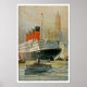 Vintage Ocean Liner illustration de l'Aquitainia, le paquebot océanique de Cunard, qui navigue sur le fleuve Hudson jusqu'à quai au début du XXe siècle.