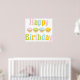 Pink, vert, bleu et orange savoureux cupcakes avec les mots, Joyeux anniversaire. Un design appétissant pour les fêtes d'anniversaire !