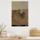 Cette impression est un autoportrait du rover MSL Curiosity à l'aide de l'une des quatre caméras du rover, le Mars Hand Lens Imager (MAHLI). Cette image a été prise sur le terrain John Klein à Gale Crater. Sur cette image on peut voir deux trous sur le sol devant le rover d'où le rover a effectué un échantillonnage de forage. Curiosity à John Klein Site, Gale Crater, Mars Hand Lens Imager (MAHLI) NASA/Caltech-JPL/MSSS