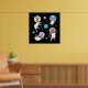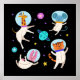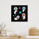 Une affiche avec une image d'astronautes dans des casques visibles flottant dans l'espace. Girafe, souris, chat et lapin. Si adorable et amusant.