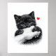 Poster Cute Black Kitten Biting Hand with Love Hear