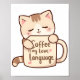Indulge in the ultimate blend of cuteness and caffeine with this charming design featuring a kawaii-style cat blissfully hugging a mug that says "Coffee is my Love Language" adorned with sweet hearts. Perfect for cat lovers and coffee addicts who express affection through their favorite brew. This whimsical illustration captures the cozy joy of morning rituals, making it an irresistible addition for anyone whose heart beats for felines and fresh coffee.