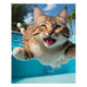 Poster Cute Cat Flying Natation Plongée dans la piscine A