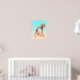 Une affiche avec un joli dessin en aquarelles d'une maman et d'une petite girafe. La girafe mère se repose la tête au-dessus de la petite girafe, aimante et adorable. Joli bouquet de fleurs d'aquarelle rose, jaune, vert placé sous cette paire de chatons. Un arrière - plan dégradé de bleu turquoise délicat qui se fond dans une couleur sable brun.