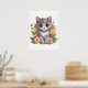 Poster Cute Grey Kitty avec Fleurs Kawaii Chibi