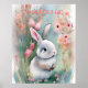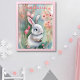 Poster Cute Lapin Lapin Pastel Aquarelle Fleurs de printe