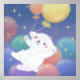 A cute fluffy white puppy with colorful balloons in night sky filled with stars