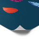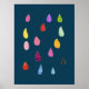 Joli design coloré de gouttes de pluie à motifs avec un thème boho. Créatif et arty contre un arrière - plan bleu marine. collage motif style art plume gouttes à goutte.