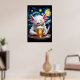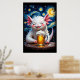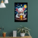 Poster Cute smiling monster with a mug of beer and starry