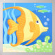 Fun, finney the fish glides in the tropical sea. Original art by little laura art. Fun fish poster for kids room or bathroom.