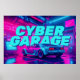 Open a vibrant, glowing window to a high-octane future right on your wall with this spectacular cyberpunk poster. This horizontal artwork draws you deep into an underground, neon-lit industrial garage. Illuminated by intense, luminous magenta and cyan lights, a classic retro-futuristic sports car waits in the center. The massive "CYBER GARAGE" typography with a retro CRT monitor texture flawlessly combines cinematic sci-fi world-building with iconic, rebellious outrun aesthetics.