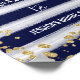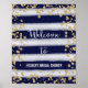 Poster imprimé pour signe de bienvenue avec faux parties scintillant or design et bleu marine rayures arrière - plan aquarelle.