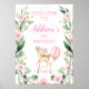 Poster d'accueil Poster d'anniversaire rose Floral Deer Sweet whimsical cerf thème fête d'anniversaire fille signe de bienvenue avec une couronne rose fleurie et feuillage, un cerf mignon et ballon.