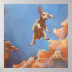 Affiche carré avec une peinture d'un chiot volant dans un ciel bleu avec des nuages. C'est un cadeau pour faire sourire quelqu'un. Idéal pour une chambre d'enfant ou une salle d'attente médicale.