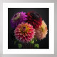 Poster is shown with a photo art print of beautiful dahlia flowers.