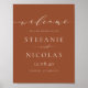 Bienvenue à vos invités mariages à votre mariage avec ce panneau d'accueil personnalisable mariage. Il dispose d'un script dainty et typographie classique en terre cuite. Personnalisez ce signe d'accueil mariage boho en ajoutant des noms, des dates, des lieux ou d'autres détails. Ce panneau d'accueil mariage en terre cuite est parfait pour toute saison mariage ou thème.