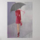 Peinture acrylique originale sur toile de Dian Bernardo..........Une belle femme moderne et branchée habillée en rouge, tenant et parapluie et marchant sous la pluie. Une scène mystérieuse et accueillante. Ça aurait l'air bien n'importe où dans votre maison et serait certainement une excellente pièce de conversation.