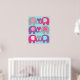 L'affiche de la pépinière Elephant Love présente six éléphants en gris, rose et violet avec des oreilles à motifs sur un arrière - plan turquoise en pois de polka bleu !