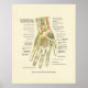 Carte anatomique à main vintage et poignet illustrant la Palme de la main gauche : Couche profonde. Muscles, artères et nerfs.